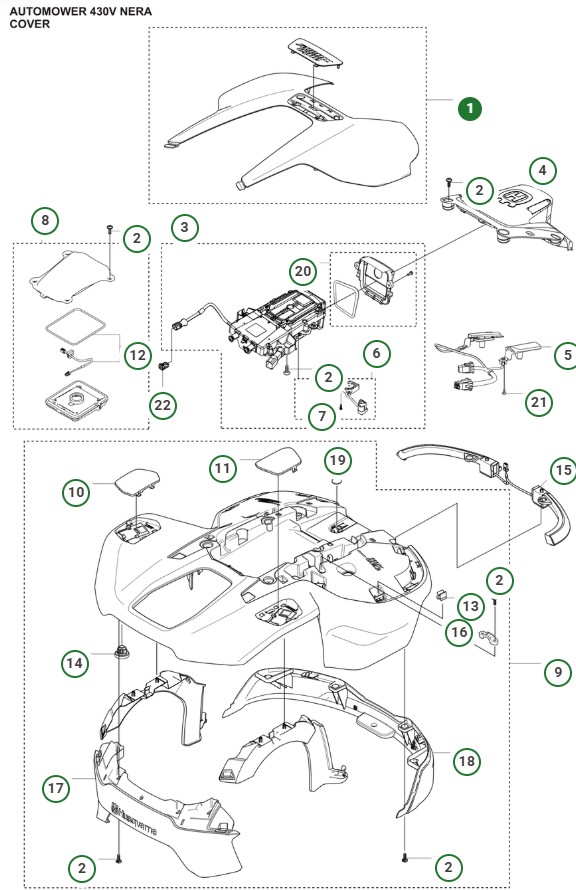 540196901, copertura superiore per Husqvarna Automower 430V Nera